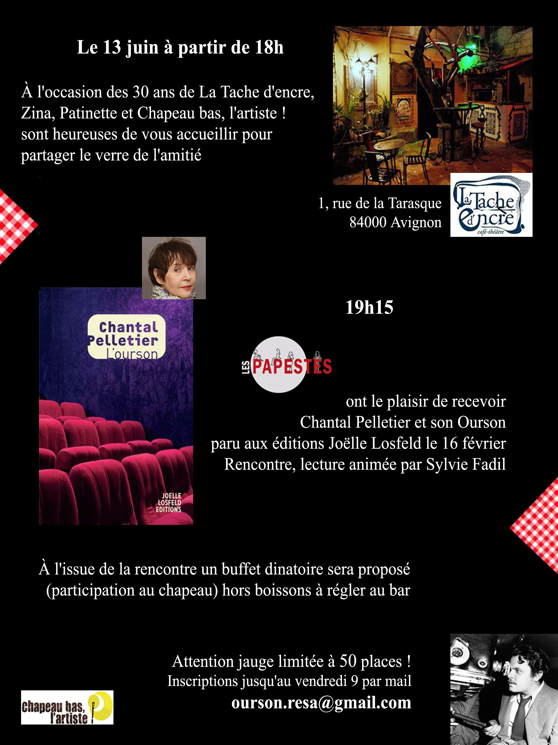 Les Papestes ont le plaisir de recevoir » Chantal Pelletier et son Ourson » paru aux Éditions Joëlle Losfeld le 16 février .